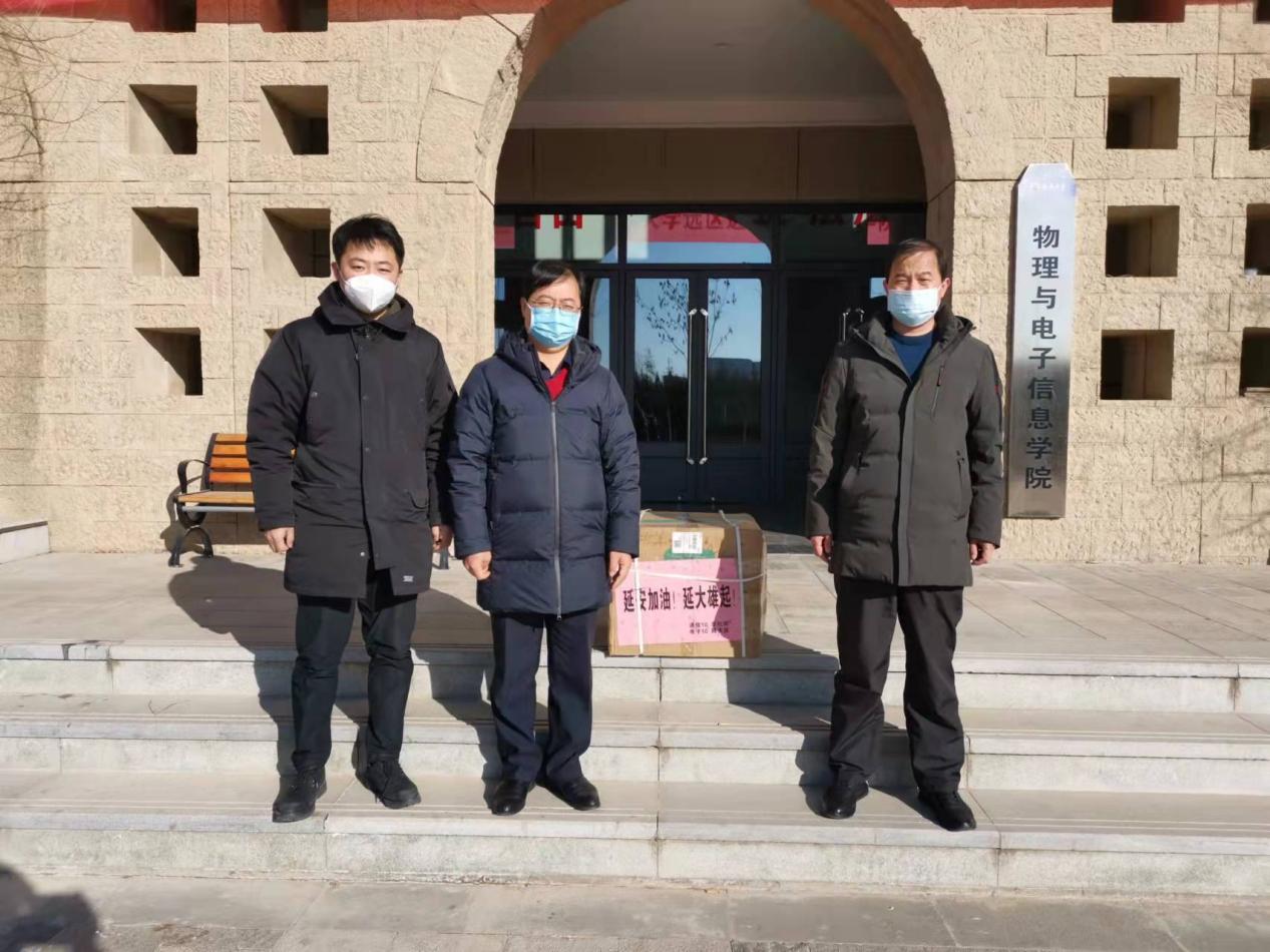 近日,延安疫情形势依旧严峻复杂,在这特殊时期,1月10日,2010级优秀员工:通信工程专业李松桃和电子信息工程专业陈大庆以个人名义向公司捐赠3000只医用外科口罩,与广大师生同舟共济、团结一心、共克时艰。公司党委书记常胜伟、经理张富春代表学院接受捐赠,并对二位致以诚挚的谢意。